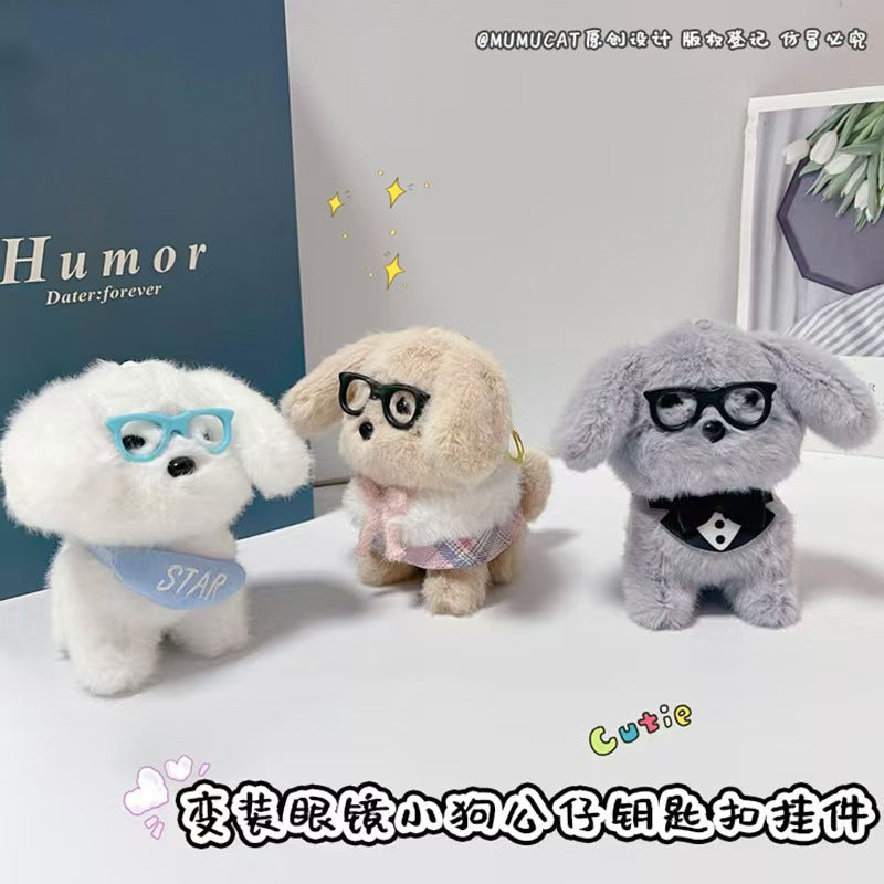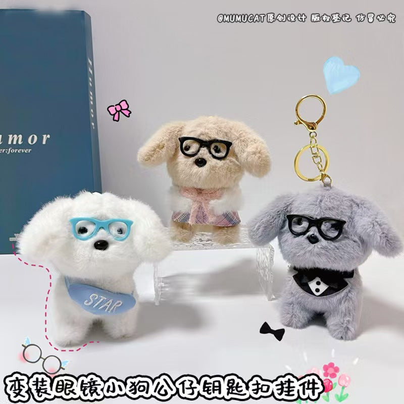 Puppy With Specs Plush Keychains