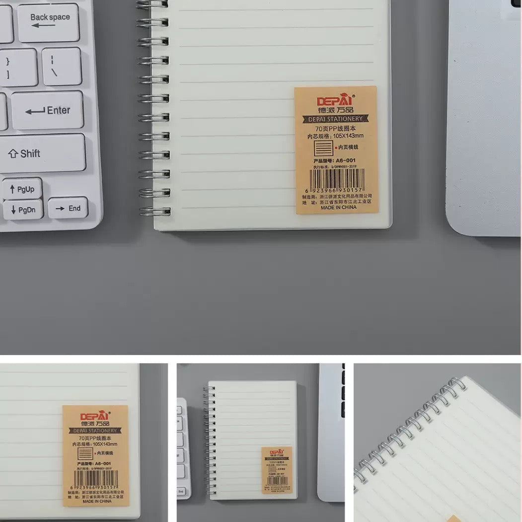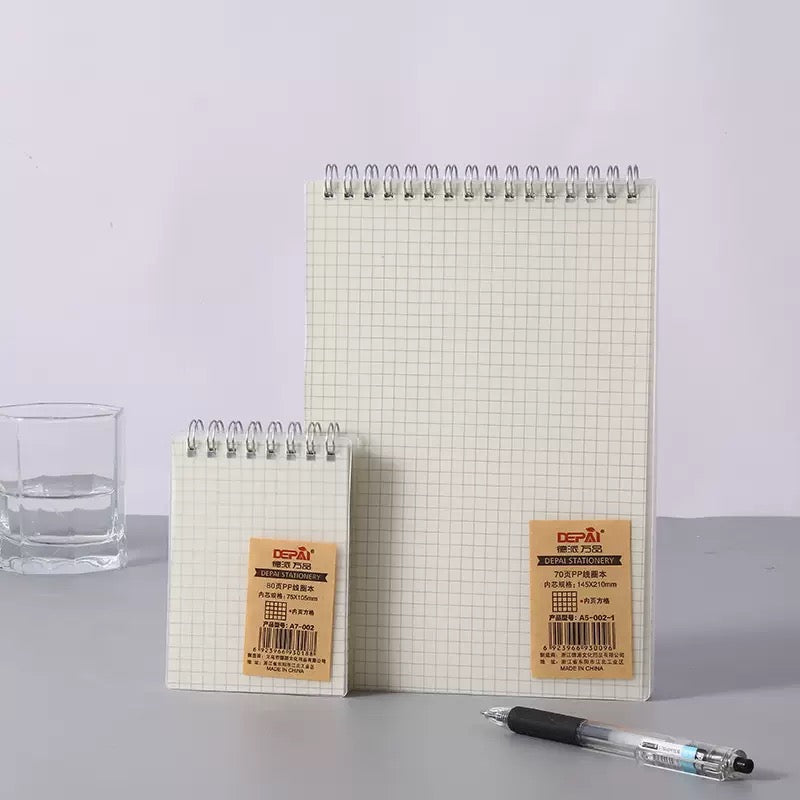 This image displays a DEPAI brand spiral-bound notebook, model A6-003-1for Grid